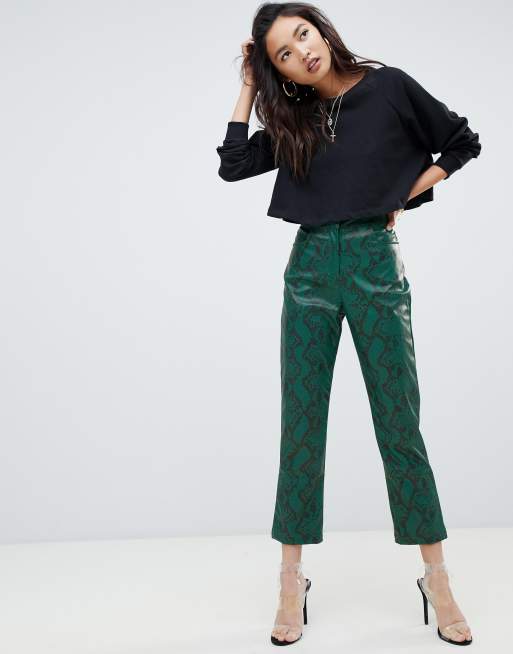Jade Green Faux Leather Snake Print Slim Leg Trousers
