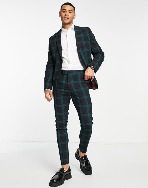 ASOS DESIGN super skinny suit trousers in dark green and black tartan
