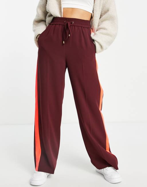 Pants with red clearance stripe down side, River Island tailored wide leg side stripe trousers in dark red clearance