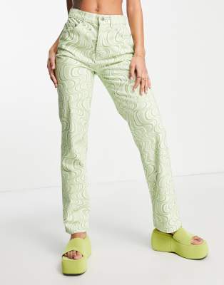 ASOS DESIGN mid rise 90 s straight leg jean in green swirl print