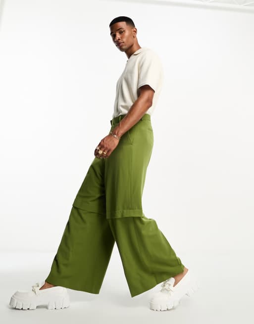 ASOS DESIGN smart extreme wide two layer wide leg trousers in green