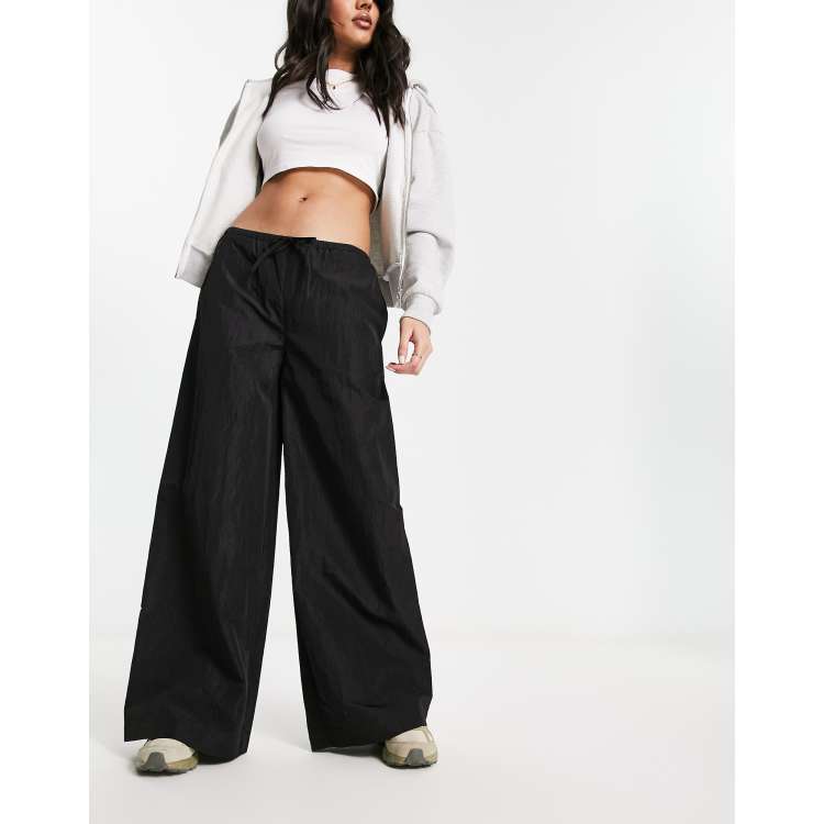 Topshop wide leg nylon track pant with contrast piping detail in black