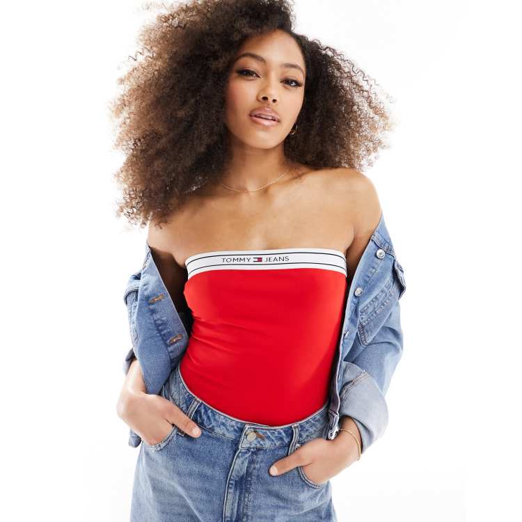 Tommy Jeans Pull On Tube Top in Bright Red