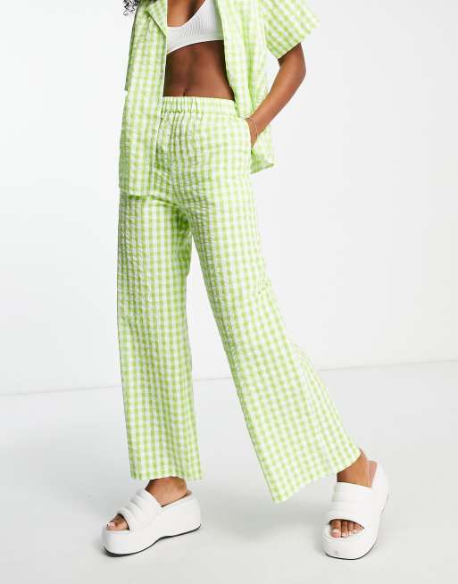 Monki co ord straight trousers in green gingham