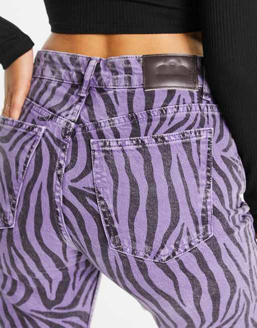 Pink Purple Zebra High Waist Jeans Summer Streetwear Animal Zip Up Flare Pants