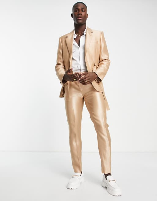 ASOS DESIGN oversized tapered suit trousers in gold metallic ASOS
