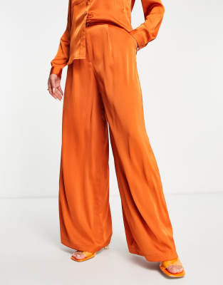 Aria Cove satin wide leg trouser co ord in rust Orange 19.50
