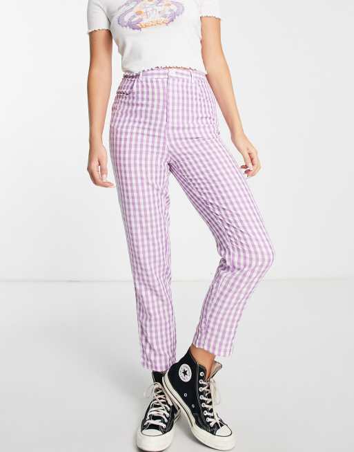 Urban Threads straight leg trousers in lilac gingham