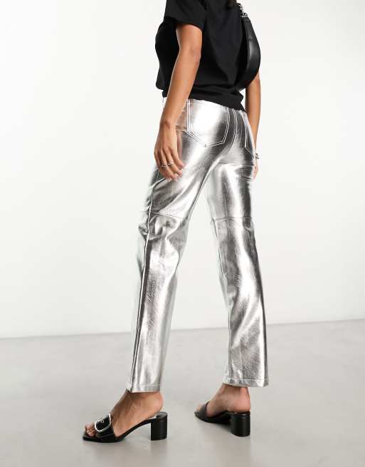 HUSH Silver Leather Trousers in Silver Foil Endource