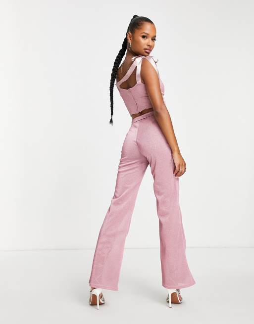 Jaded Rose Petite sheer wide leg trousers on pink sparkle co ord