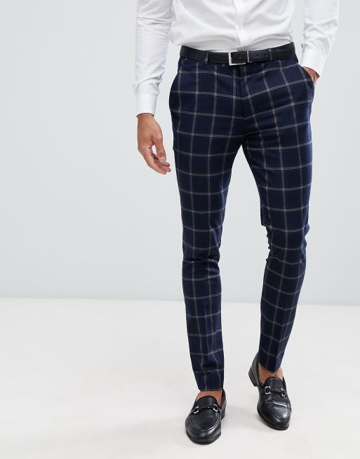 ASOS DESIGN super skinny suit trousers in large scale navy windowpane check