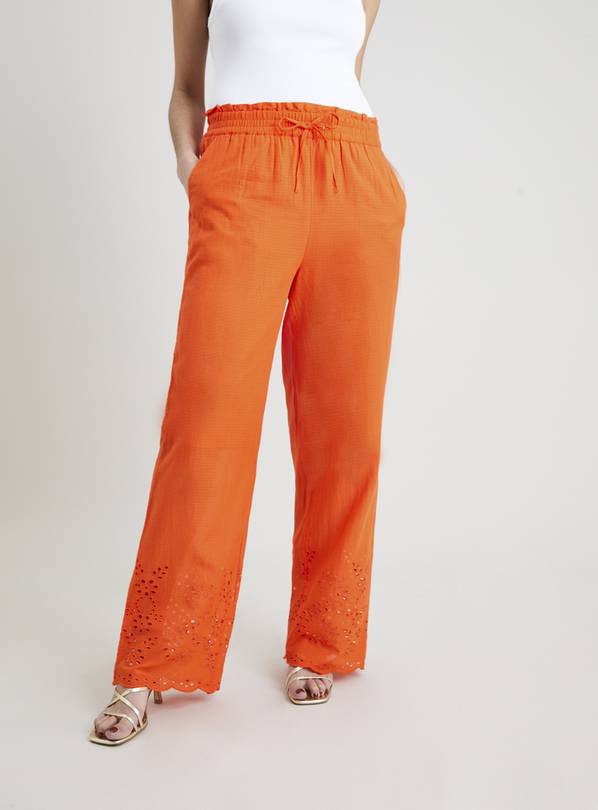 Orange straight leg clearance pants, Buy Orange Broderie Hem Wide Leg Trousers 8 Trousers Tu clearance