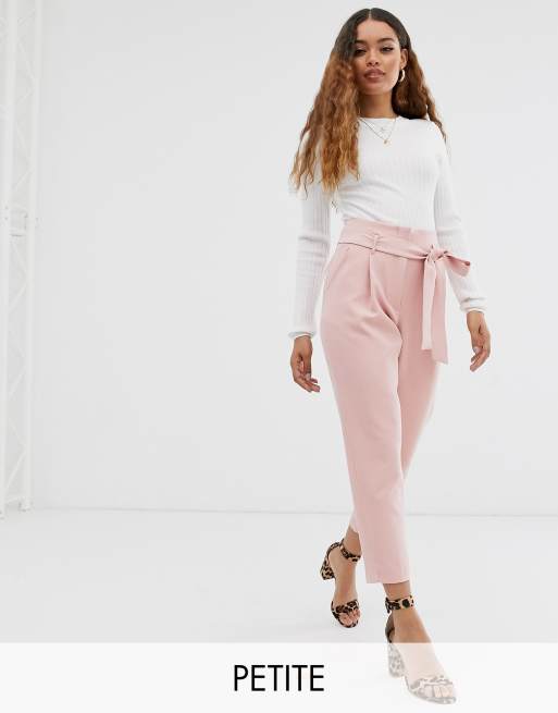 Baby Pink Paper Bag Tie Waist Cigarette Trousers Karmen