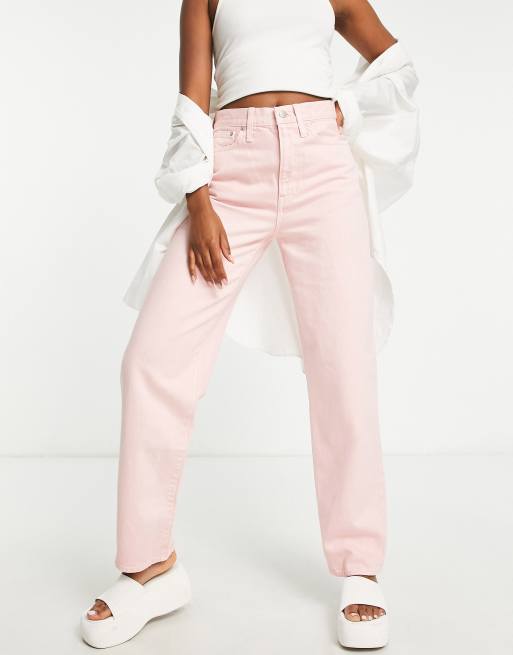 Baggy clearance pink jeans, Bysonglezai Jeans Women S Pants Casual Ladies Pink Jeans High clearance