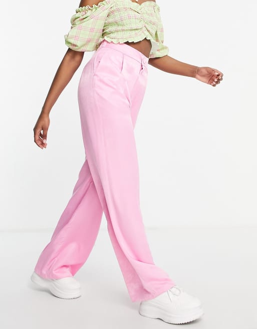 Candy clearance pink pants, Stradivarius satin wide leg pants in candy pink clearance