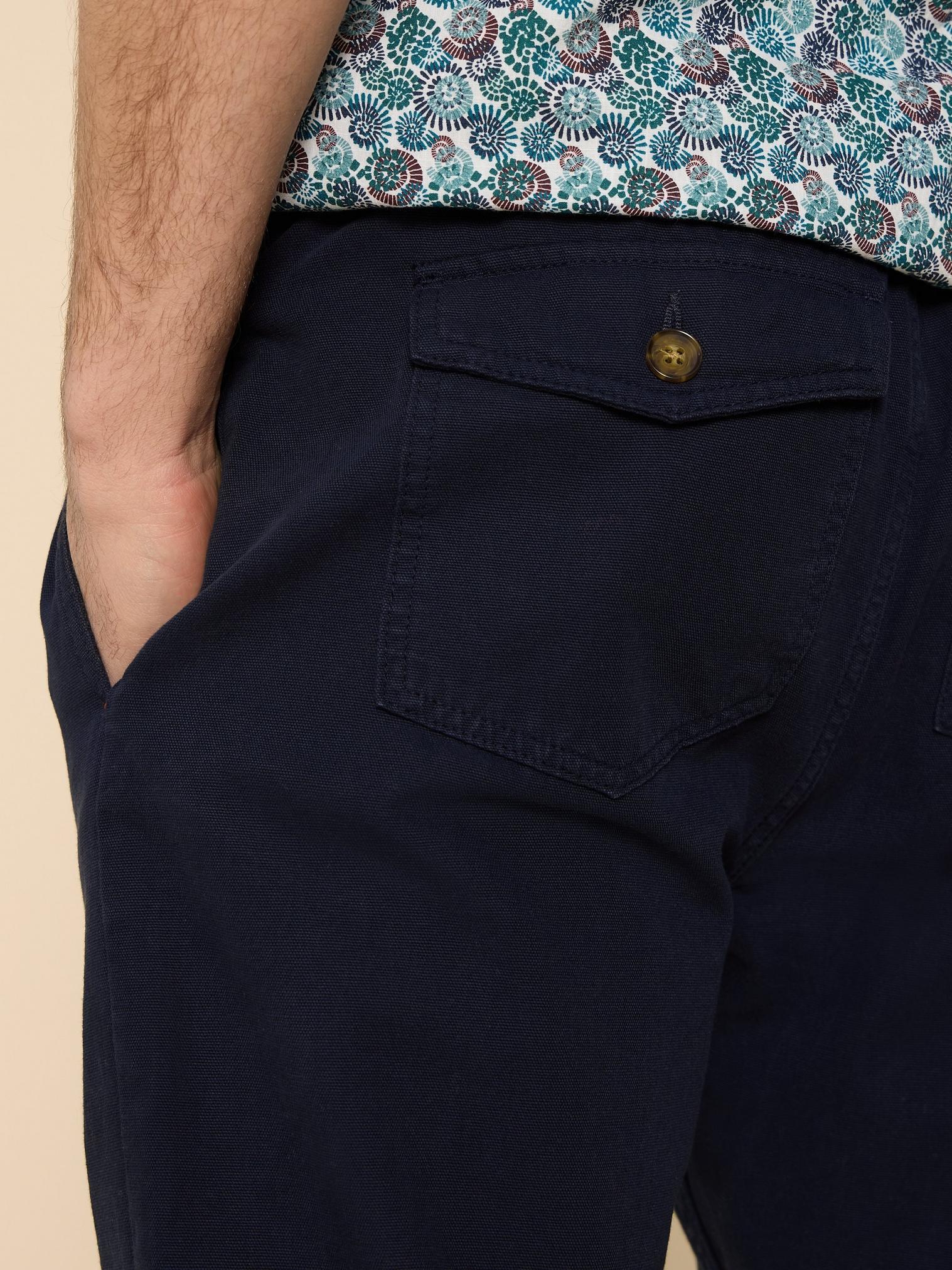 Mens Drawstring Waist Casual Trousers in Navy Blue