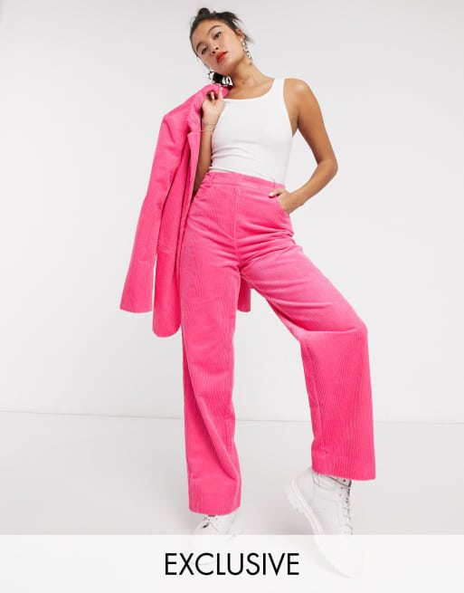 Asos pink corduroy clearance pants, ASOS DESIGN wide suit trouser in coral pink cord ASOS clearance