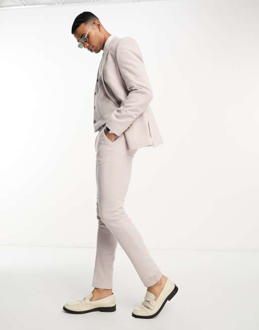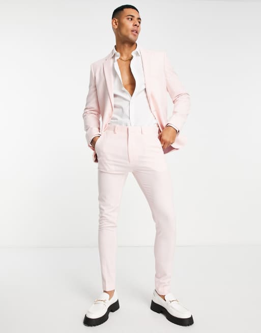 Pale pink dress clearance pants, ASOS DESIGN super skinny linen mix suit trouser in pastel pink ASOS clearance