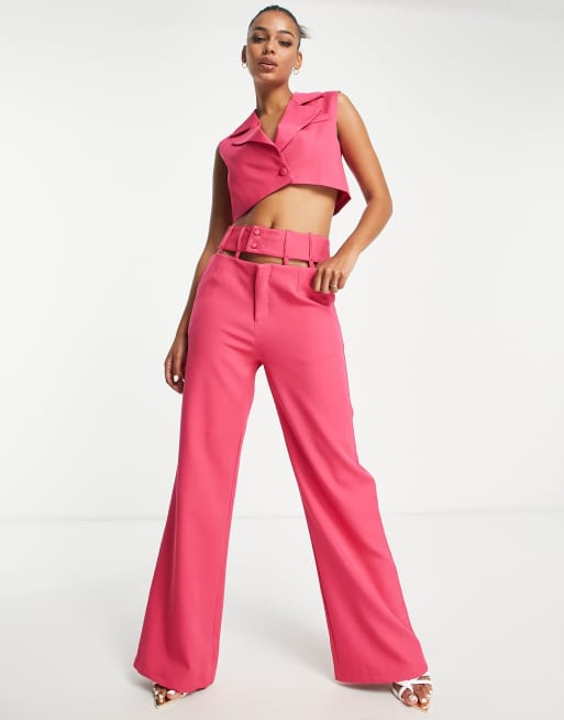 Unique21 high waisted cut out wide leg trousers co ord in pink