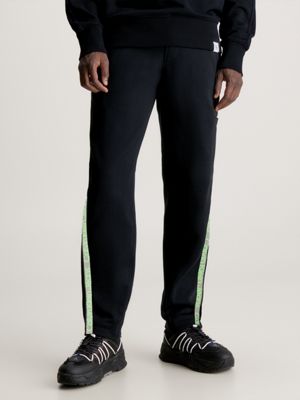 Calvin Klein Mens Logo Icon Tape Fleece Black Tracksuit Bottoms Joggers