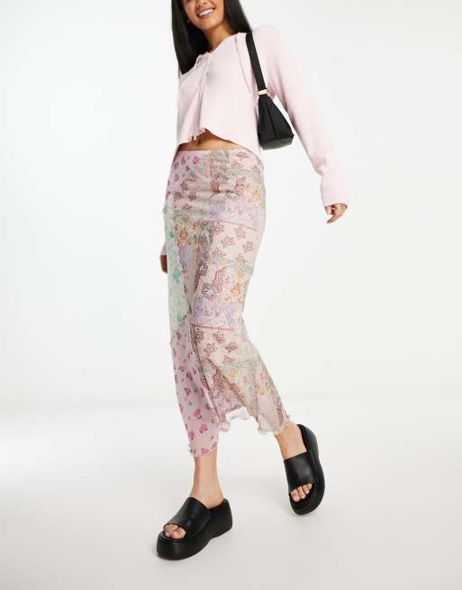 ASOS DESIGN spliced midi skirt with asymmetric hem in floral print