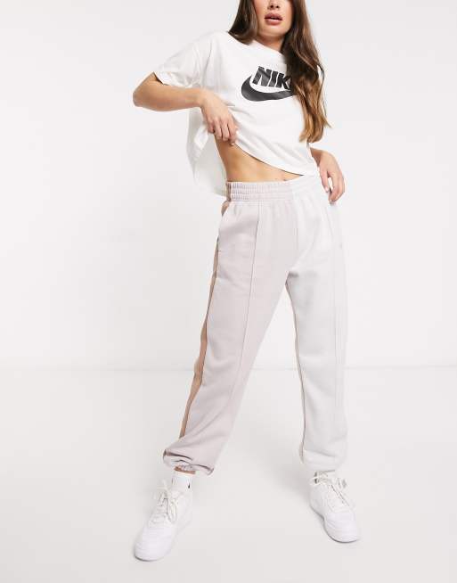 Nike Metallic Swoosh colour block joggers in cream and grey neutrals