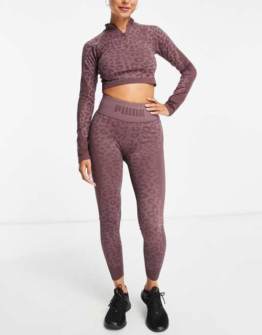 Puma clearance bow leggings, Puma Training formknit seamless high waist 7 8 leggings in mauve leopard print clearance