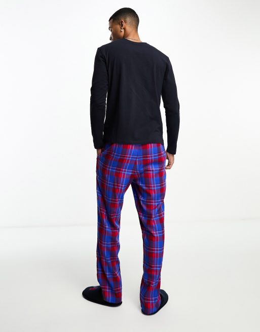 Tommy hilfiger lounge clearance pants, Tommy Hilfiger flannel lounge gift set with slippers in checked blue red clearance
