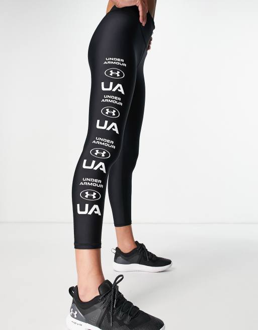 Under Armour Training Heatgear graphic 7 8 crop leggings in black