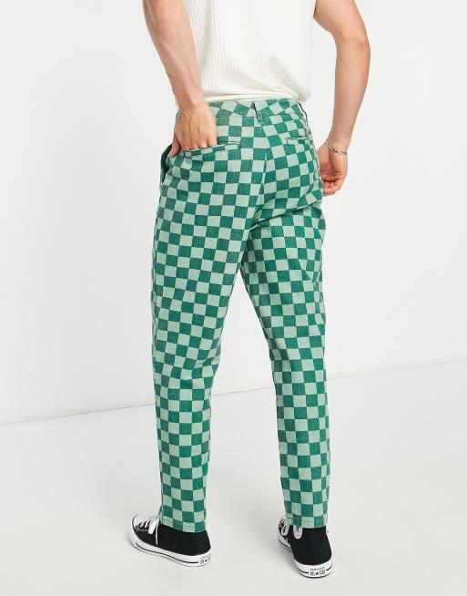 ASOS DESIGN skater fit trousers with checkerboard print in green