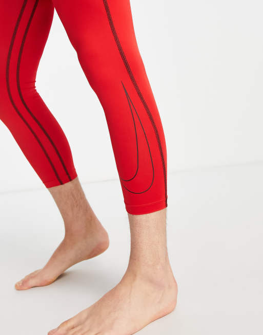 Men's nike red clearance compression pants, Nike Training Dri FIT Pro compression 3 4 tights in red clearance