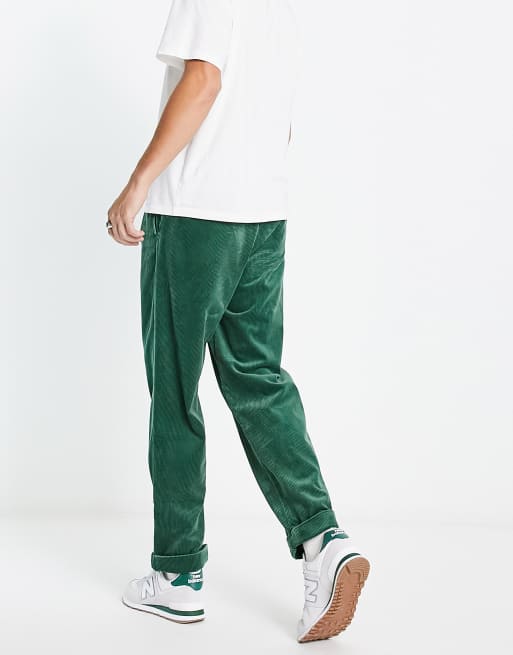 Polo Ralph Lauren pleated wide leg cord trousers in dark green ASOS