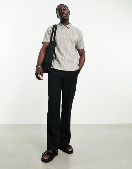 ASOS DESIGN relaxed polo shirt in grey white stripe with zip ASOS