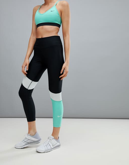 Nike Training Power Crop Legging In Mint Colourblock ASOS