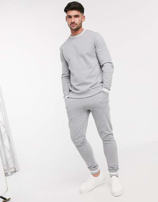 ASOS DESIGN lightweight tracksuit with sweatshirt skinny joggers in grey marl GREY