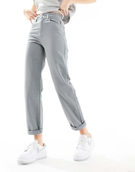 Paperbag clearance waist joggers, Pull Bear paperbag waist Mom jean in grey clearance