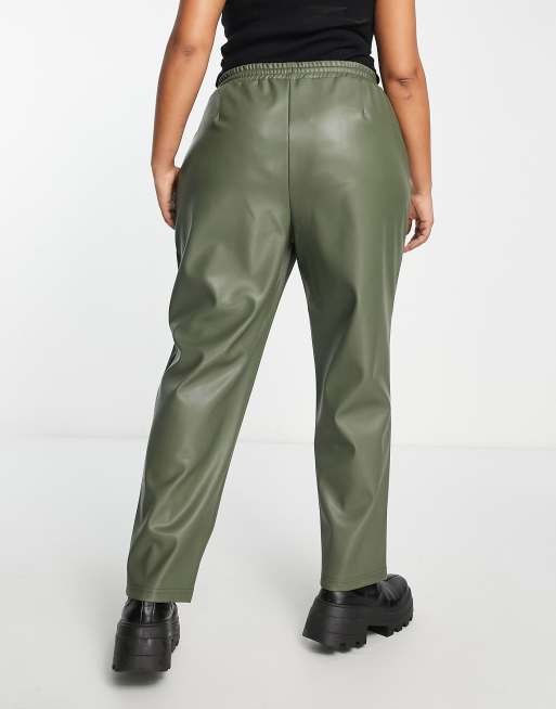 ASOS DESIGN Curve pull on faux leather jogger in khaki ASOS