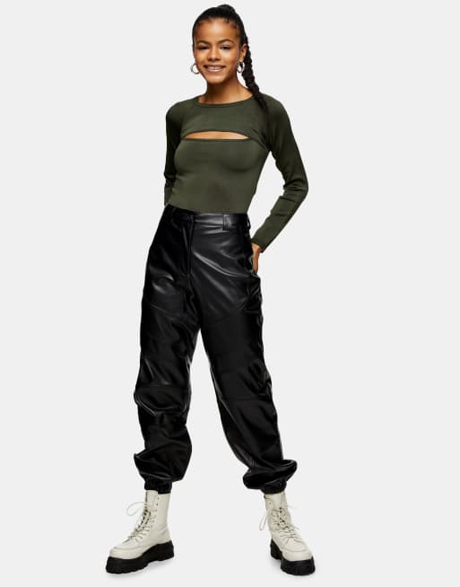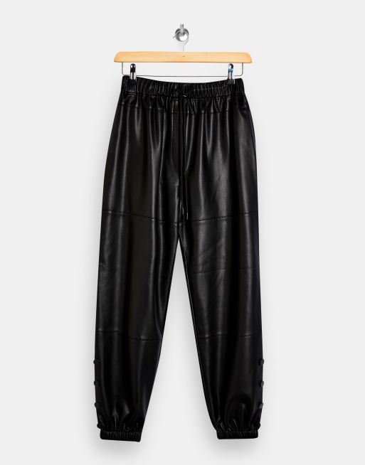 Topshop faux leather jogger style straight leg trouser in black ASOS