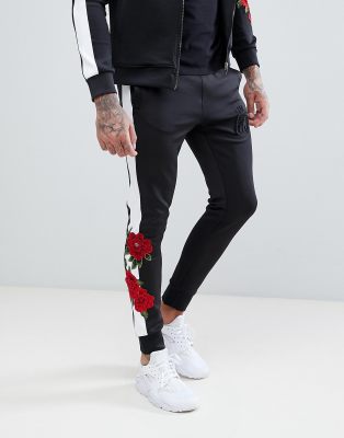 Kings will dream clearance black joggers, Kings Will Dream Skinny Joggers With Rose Print Side Stripes ASOS clearance