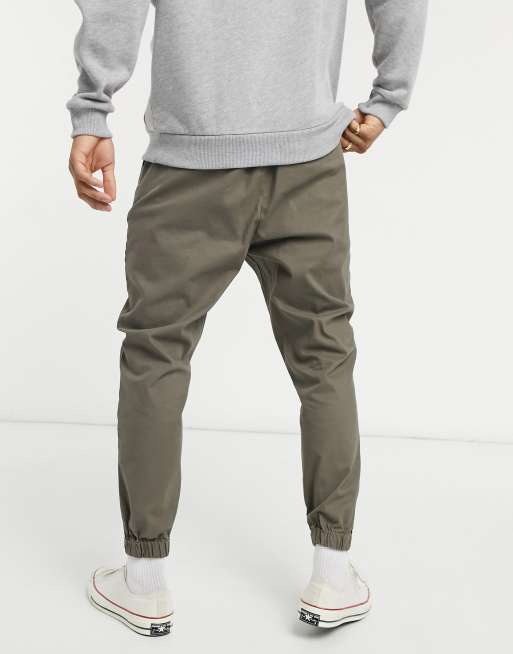 ASOS DESIGN tapered chino joggers with elasticated waist in khaki