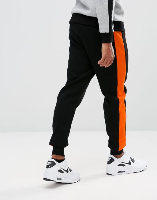 Hype Skinny Joggers In Black With Orange Stripe