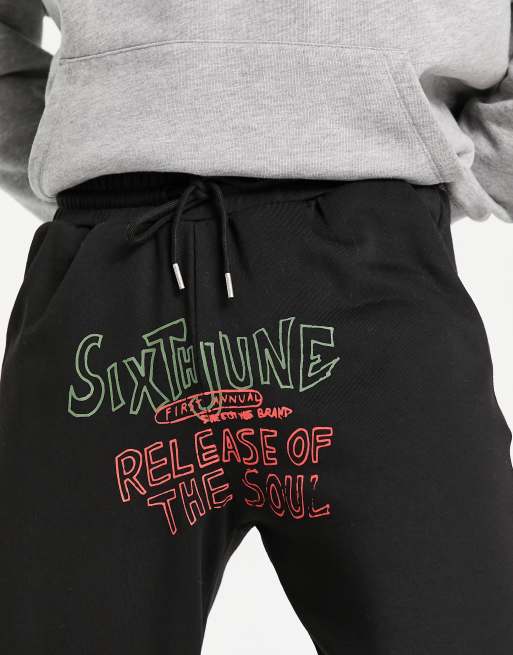 Custom clearance print joggers, Sixth June custom print joggers in black exclusive to ASOS clearance