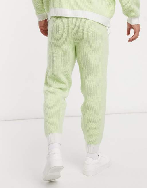 ASOS DESIGN knitted co ord ribbed joggers in lime green