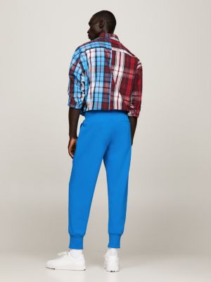 Mens checked jogger clearance trousers, Crest Patch Cuffed Joggers Blue Tommy Hilfiger clearance