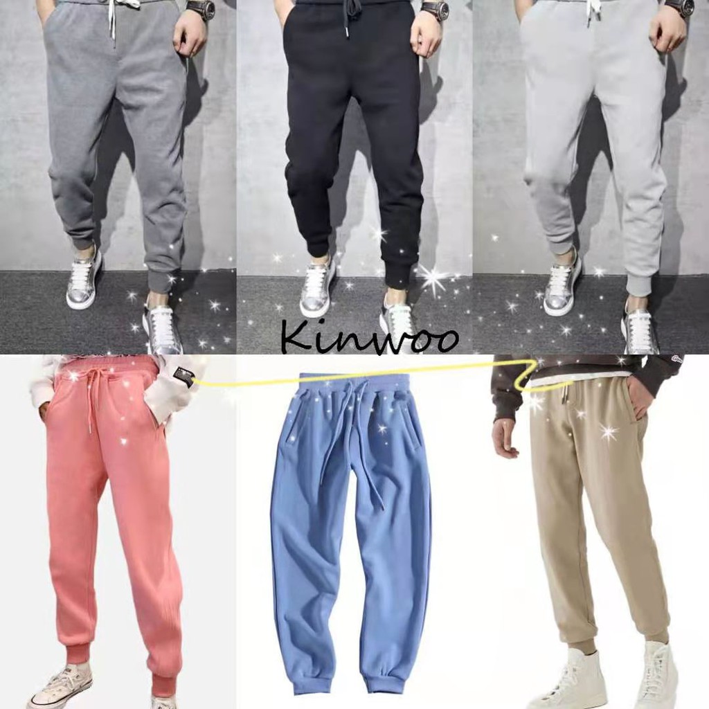 unisex plain Jogger pants cotton Makapal Tela with zippers