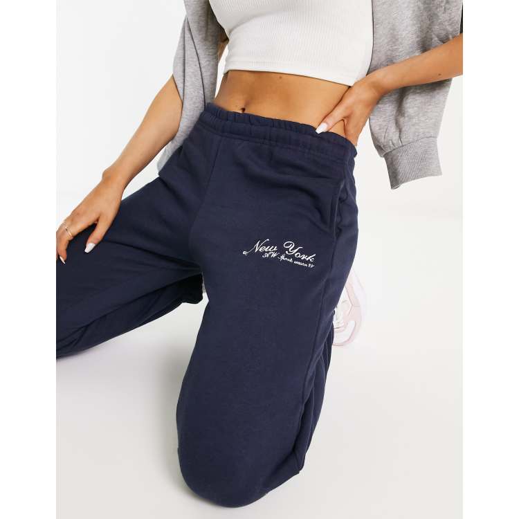 Pull Bear oversized New York slogan trackies in navy blue part of a set