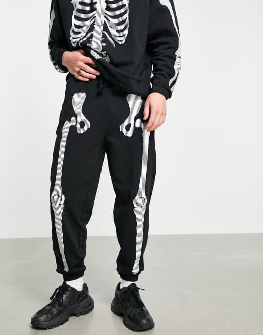ASOS DESIGN co ord tapered joggers with Halloween skeleton print in black