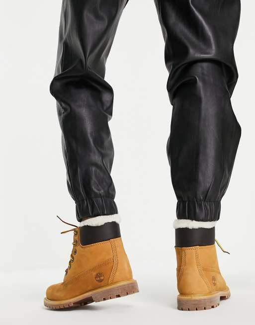 Timberland boots and clearance joggers, Timberland Premium Shearling lace up boots in wheat tan ASOS clearance