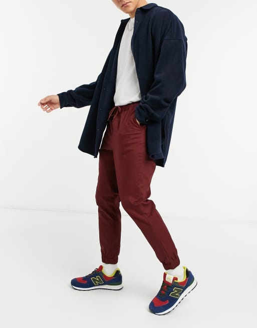 ASOS DESIGN tapered chino joggers in burgundy ASOS