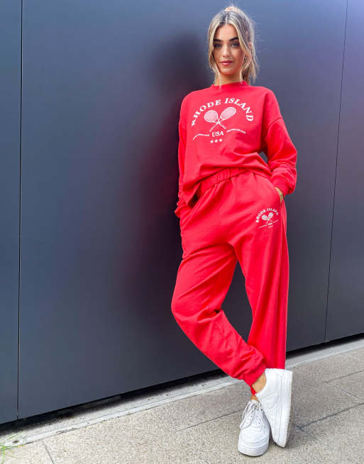 ASOS DESIGN roll waist oversized jogger with tennis logo in red